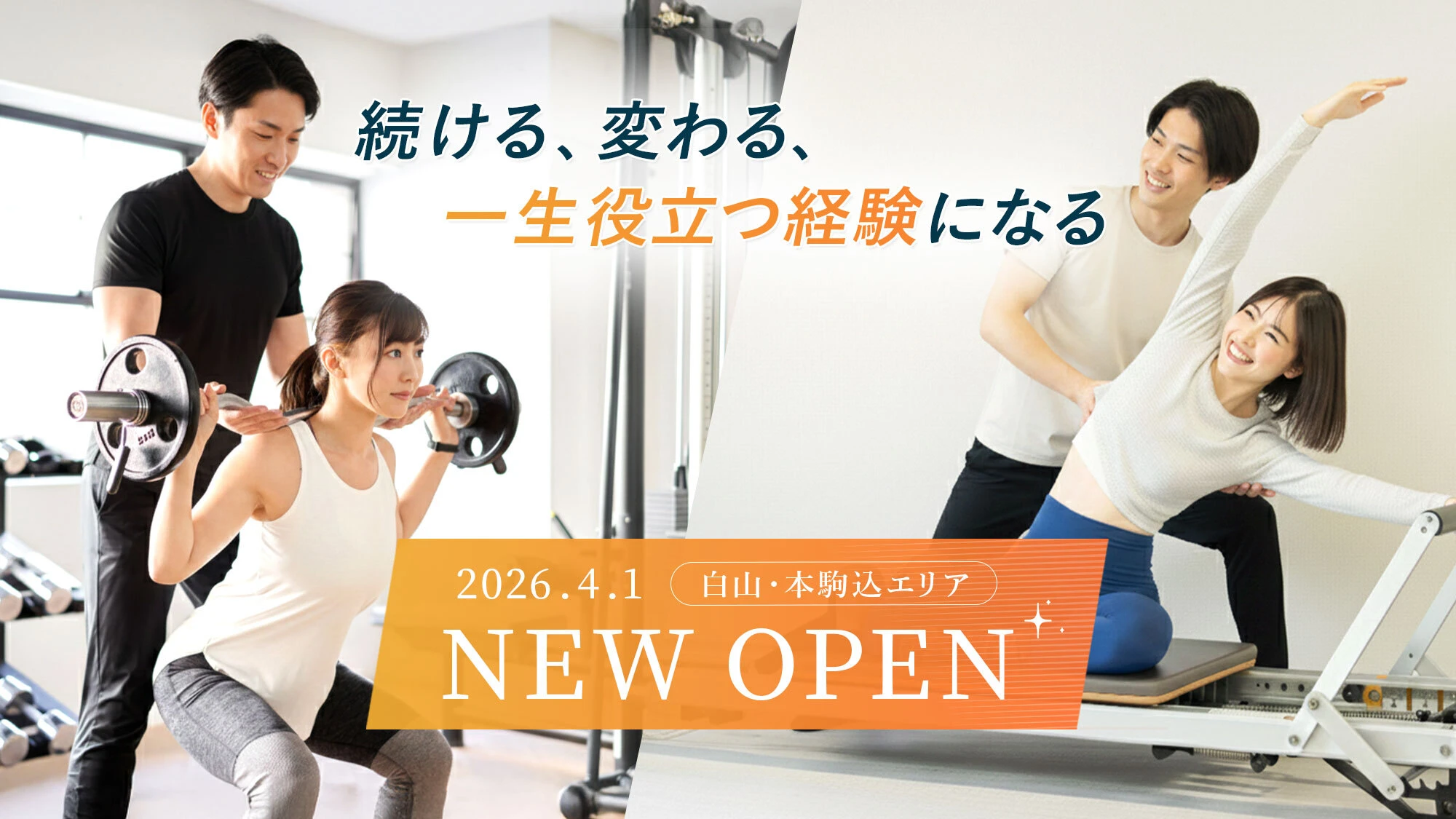 姿勢改善やコアの強化に強みを持つピラティスと、ボディメイクやダイエットが得意な筋力トレーニングを組み合わせたセッションを提供いたします。